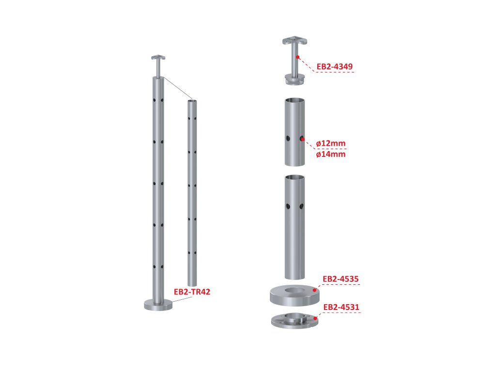 nerezový stĺp, vrchné kotvenie, 5 dierový rohový: 90°, vrch pevný (ø 42.4x2mm), brúsená nerez K320 /AISI316Dodatočné parametre