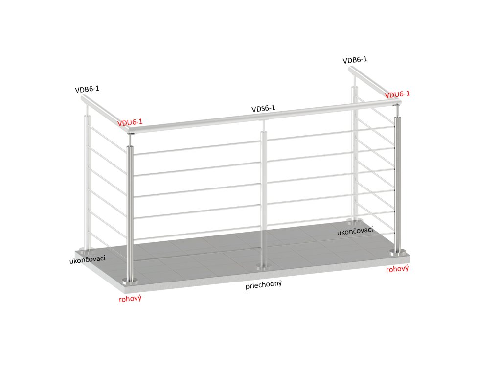 nerezový stĺp, vrchné kotvenie, 6 dierový rohový: 90°, vrch pevný (ø 42.4x2mm), leštená nerez /AISI304Dodatočné parametre