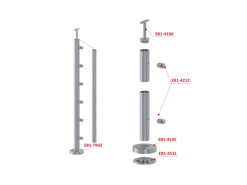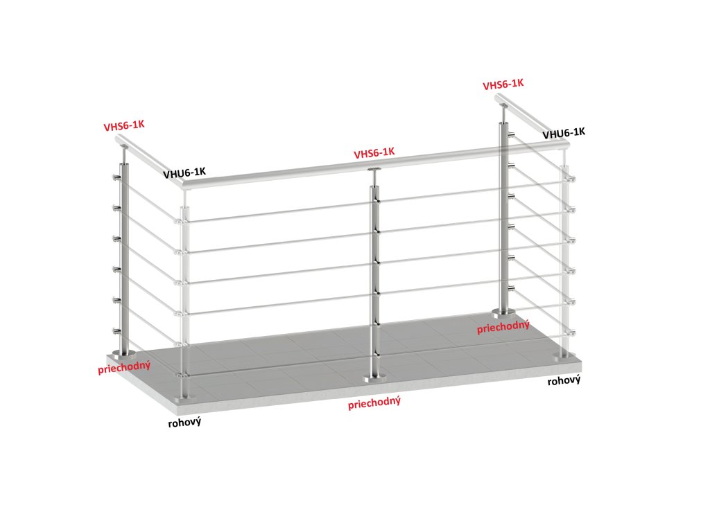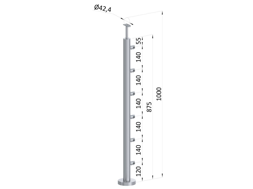 nerezový stĺp, vrchné kotvenie, 6 radový, priechodný, vrch pevný (ø 42.4x2mm), brúsená nerez K320 /AISI304Dodatočné parametre
