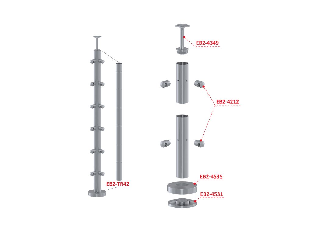 nerezový stĺp, vrchné kotvenie, 6 radový rohový: 90°, vrch pevný (ø 42.4x2mm), brúsená nerez K320 /AISI316Dodatočné parametre