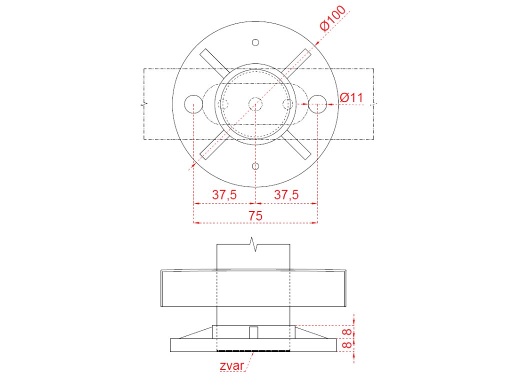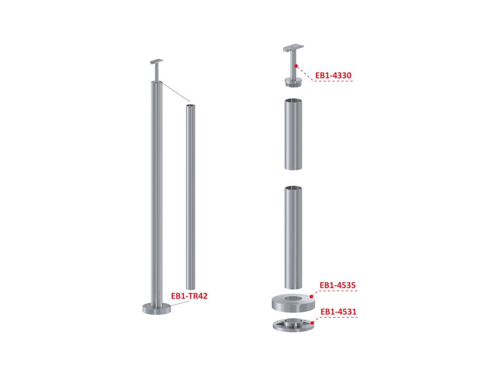 nerezový stĺp, vrchné kotvenie, bez výplne, vrch pevný (ø 42.4x2mm), brúsená nerez K320 /AISI304Dodatočné parametre