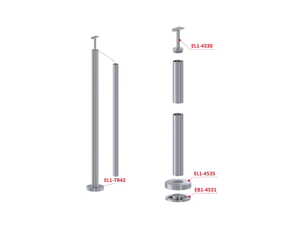 nerezový stĺp, vrchné kotvenie, bez výplne, vrch pevný (ø 42.4x2mm), leštená nerez /AISI304