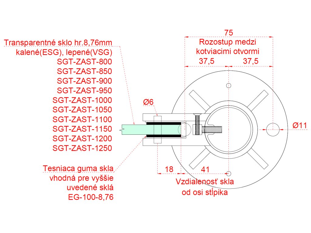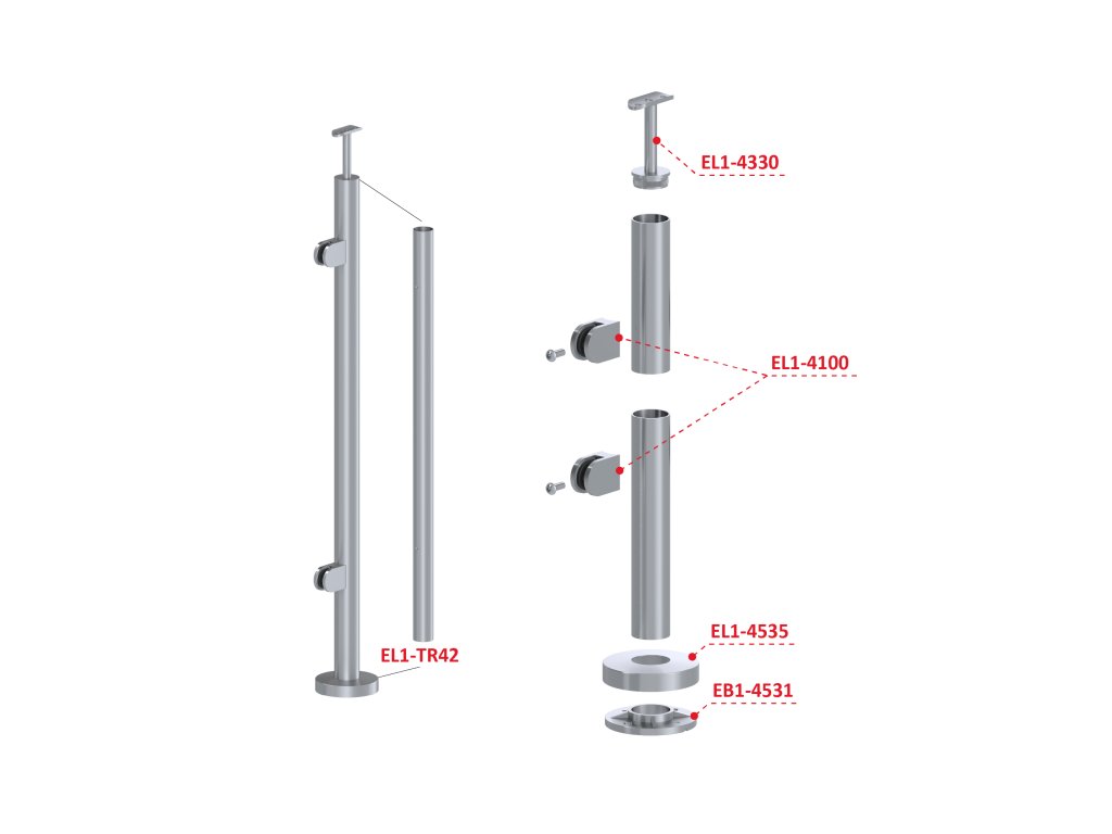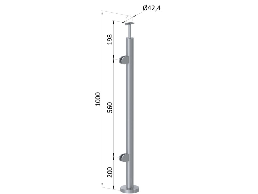 nerezový stĺp, vrchné kotvenie, výplň: sklo, ľavý, vrch pevný (ø 42.4x2mm), leštená nerez /AISI304Dodatočné parametre