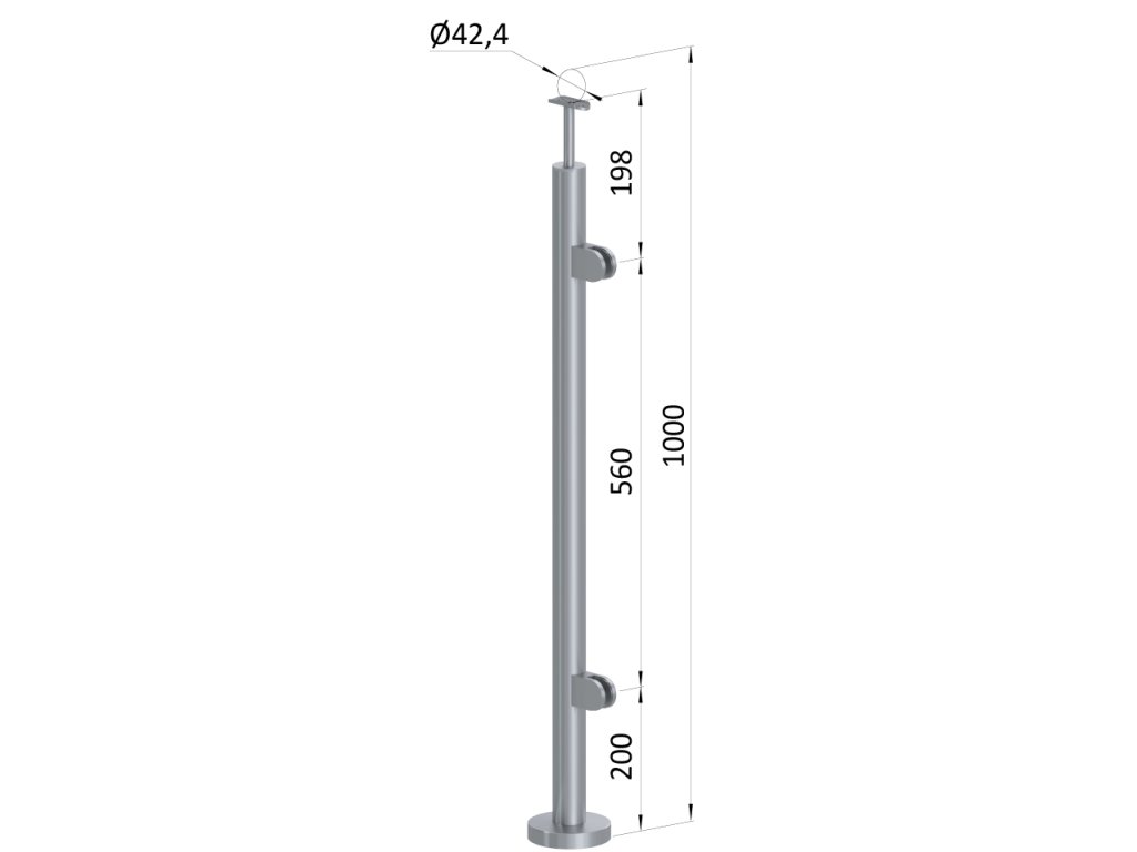 nerezový stĺp, vrchné kotvenie, výplň: sklo, pravý, vrch pevný, (ø 42.4x2mm), brúsená nerez K320 /AISI304Dodatočné parametre