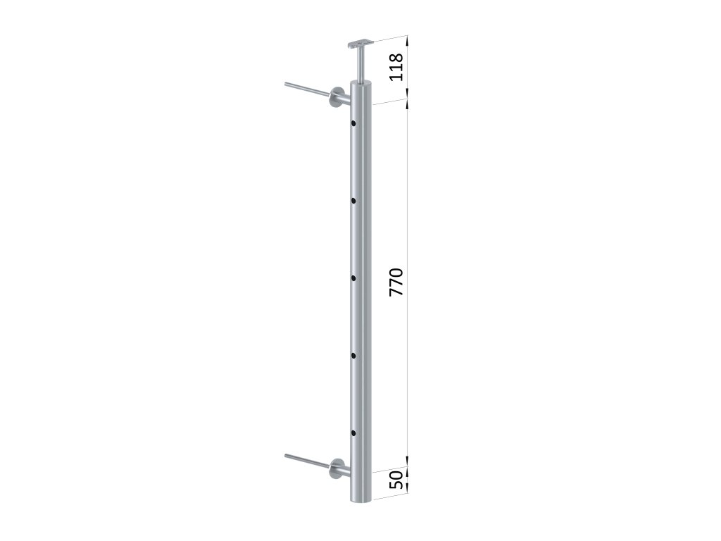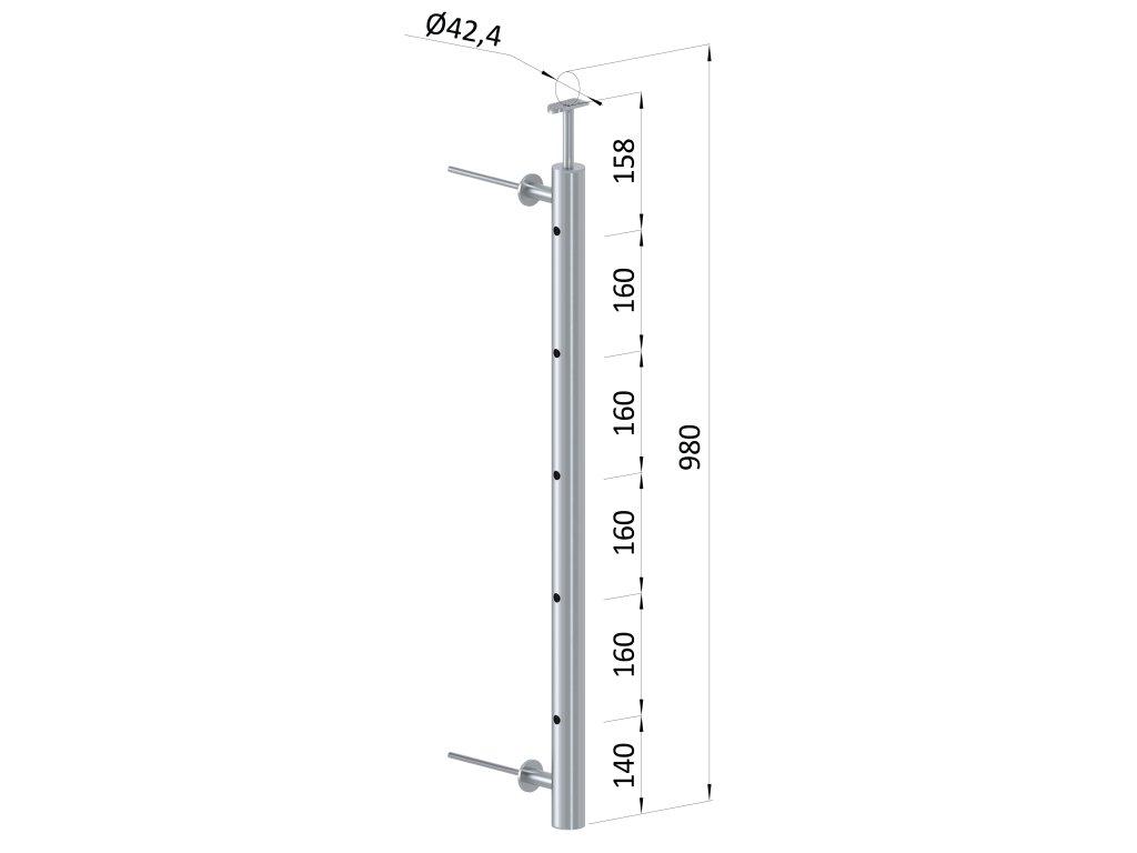 nerezový stĺp na francúzsky balkón, bočné kotvenie, 5 dierový, priechodný, vrch pevný, (ø 42.4x2mm), brúsená nerez K320 /AISI304