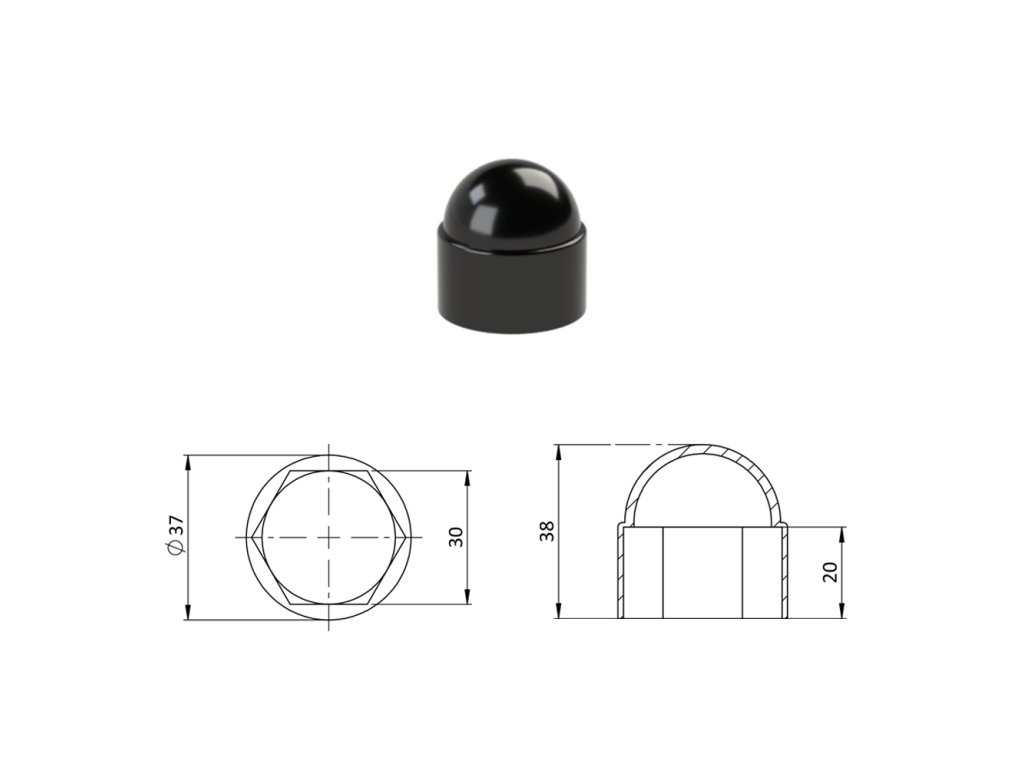 Krytka plastová na matice a skrutky M20, čierna