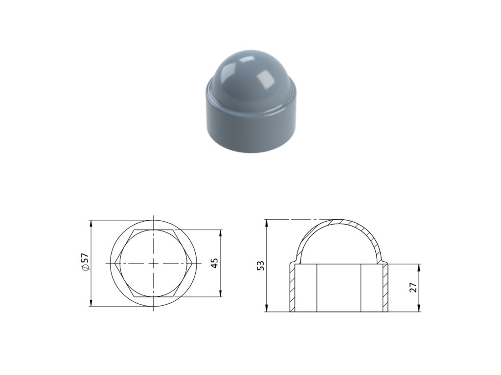 Krytka plastová na matice a skrutky M30, sivá