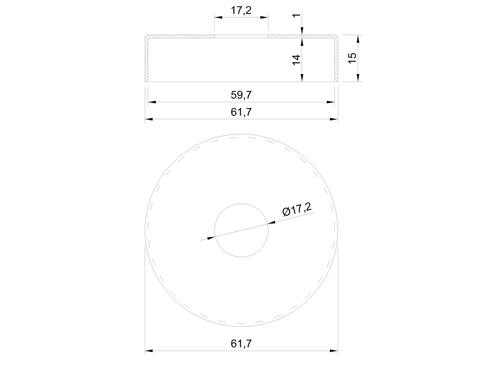 kryt (ø 62/15mm) otvor ø 17mm, brúsená, hrúbka materiálu 1mm, nerez K320 /AISI304