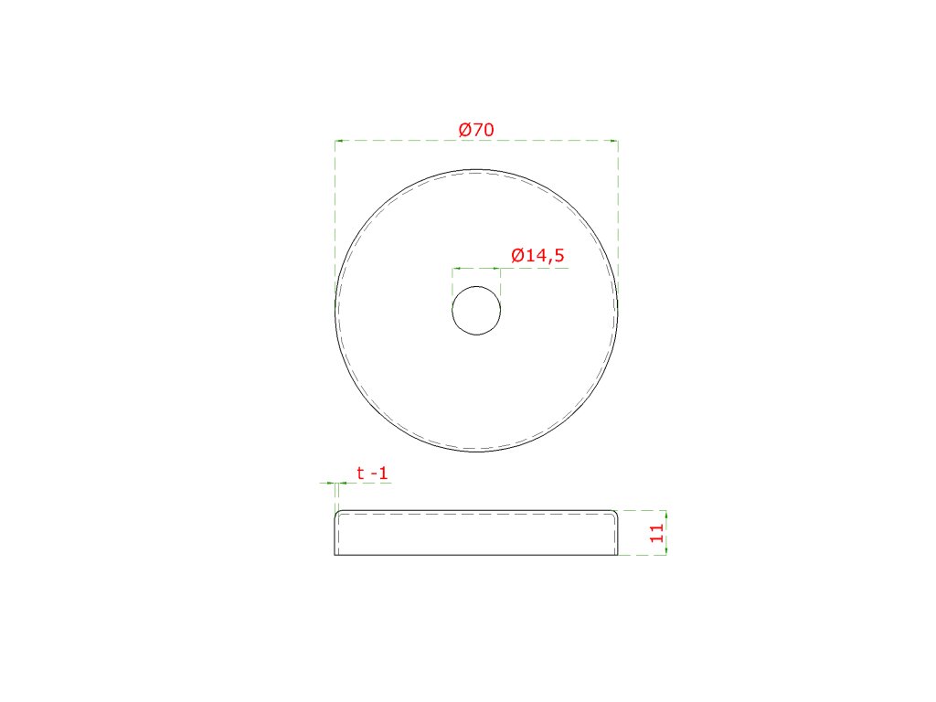 kryt (ø 70/11mm) na trubku ø 14mm (otvor ø 14.5mm), brúsená nerez K320 /AISI304Dodatočné parametre
