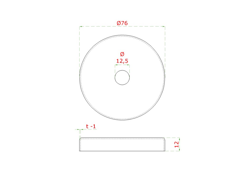 kryt (ø 76/12mm) na trubku ø 12mm (otvor ø 12.5mm), brúsená nerez K320 /AISI304Dodatočné parametre