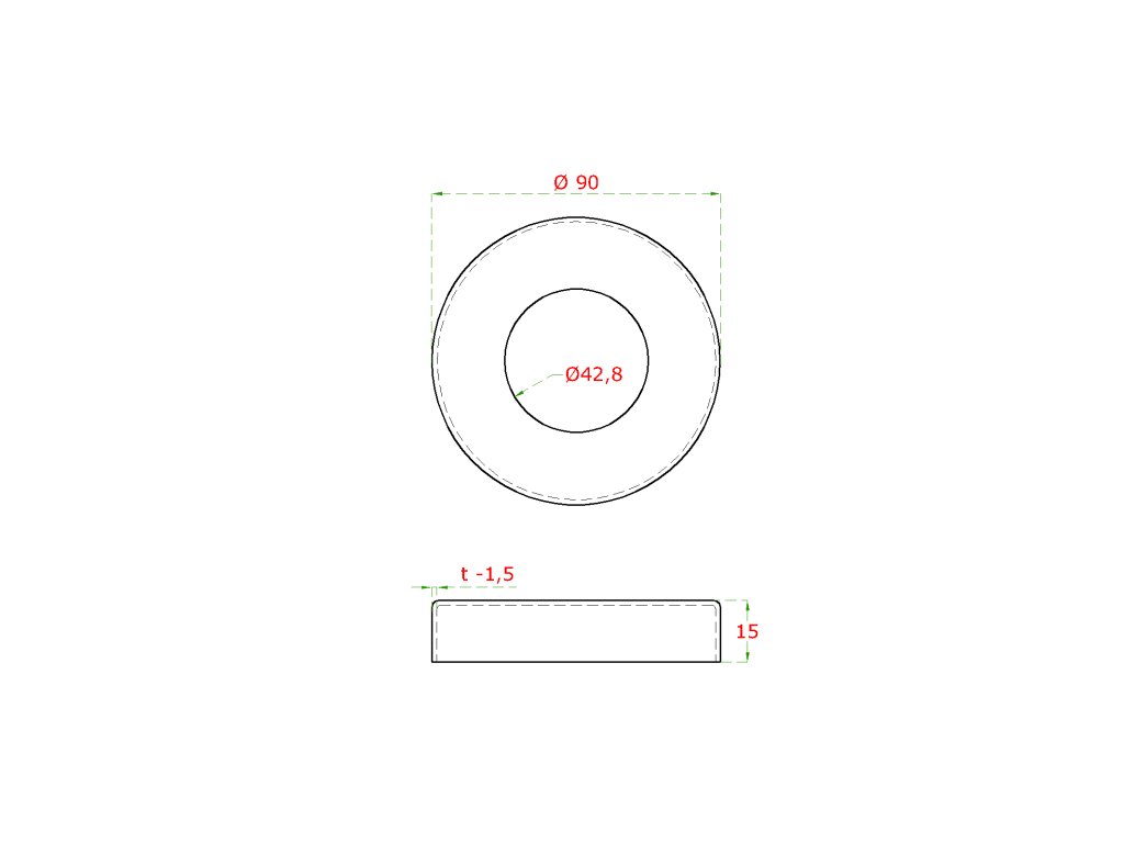 kryt príruby (ø 90x15mm) na trubku ø 42.4mm, otvor ø 42.8mm, brúsená nerez K320 /AISI304