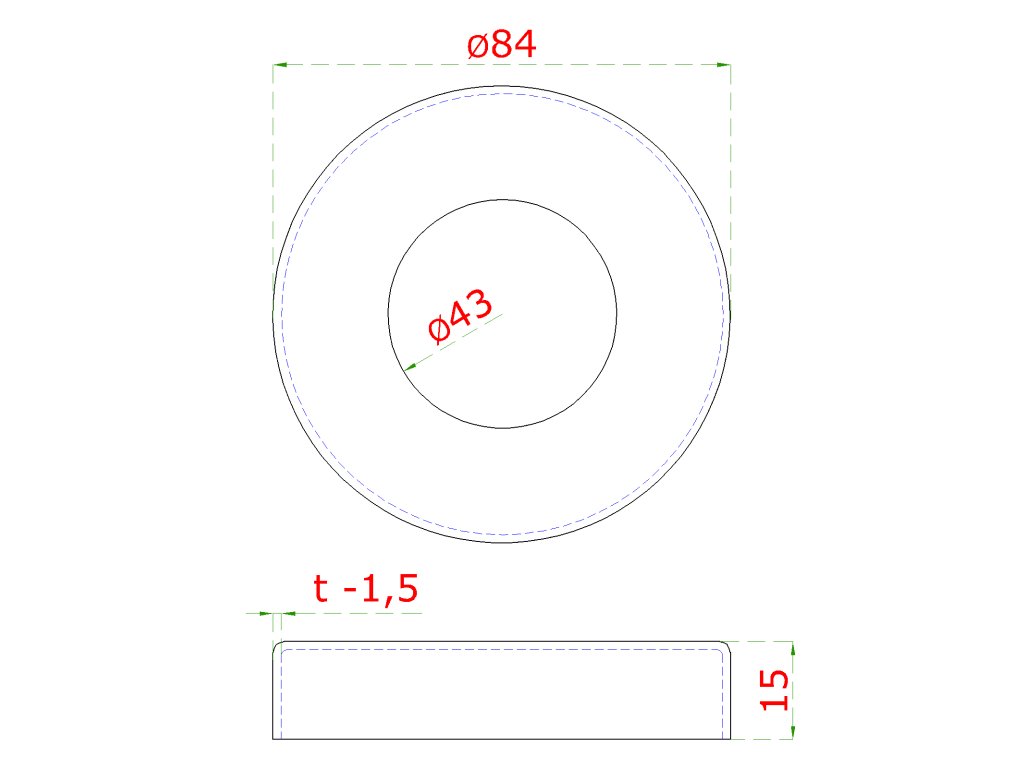 kryt príruby (84x15mm) na trubku ø 42.4mm, otvor ø 42.8mm, leštená nerez /AISI304Dodatočné parametre