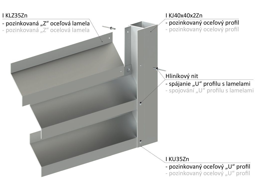 Z-profil-lamela L-2000mm, 20x40x20x1,5mm, zinkovaný plech, použitie pre plotovú výplň v kombinácii s KU35Zn a profilom 35mm,40mm alebo špeciálom KJL70x34x55x2, cena za 2 m kus