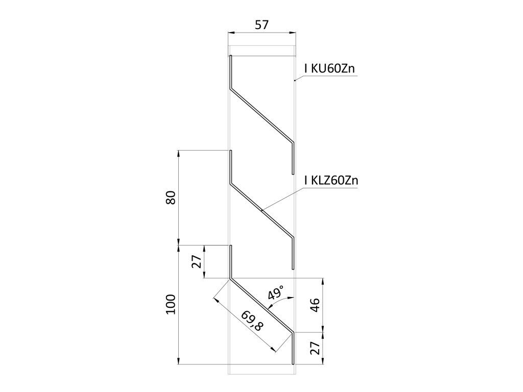 Z profil lamela L-2000 mm, 27x46x27x1,5 mm, zinkovaný plech, použití pro plotovou výplň, možnost použít s KU60Zn, cena za 2 metrový kus