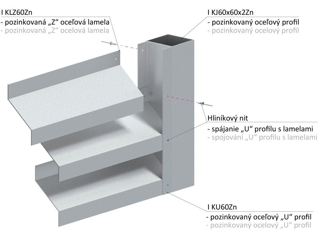 Z-profil-lamela L-2000mm, 27x46x27x1,5mm, zinkovaný plech, použitie pre plotovú výplň, možnosť použiť s KU60Zn, cena za 2 metrový kus