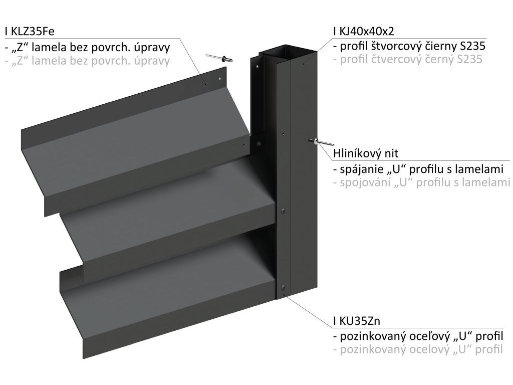 Z-profil-lamela L-2000mm 20x40x20x1,5mm, plech bez povrchovej úpravy, použitie pre plotovú výplň, možnosť použiť pre bránový špeciál KJL70x34x55x2 cena za 2m ks