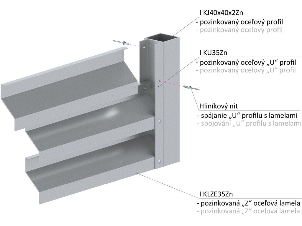 Z-profil-lamela L-3000mm, 23x40x20x1,5mm s vystuženou hranou 10mm, zinkovaný plech, použitie pre plotovú výplň v kombinácii s KU35Zn a profilom 35mm,40mm alebo špeciálom KJL70x34x55x2, cena za 3m kus