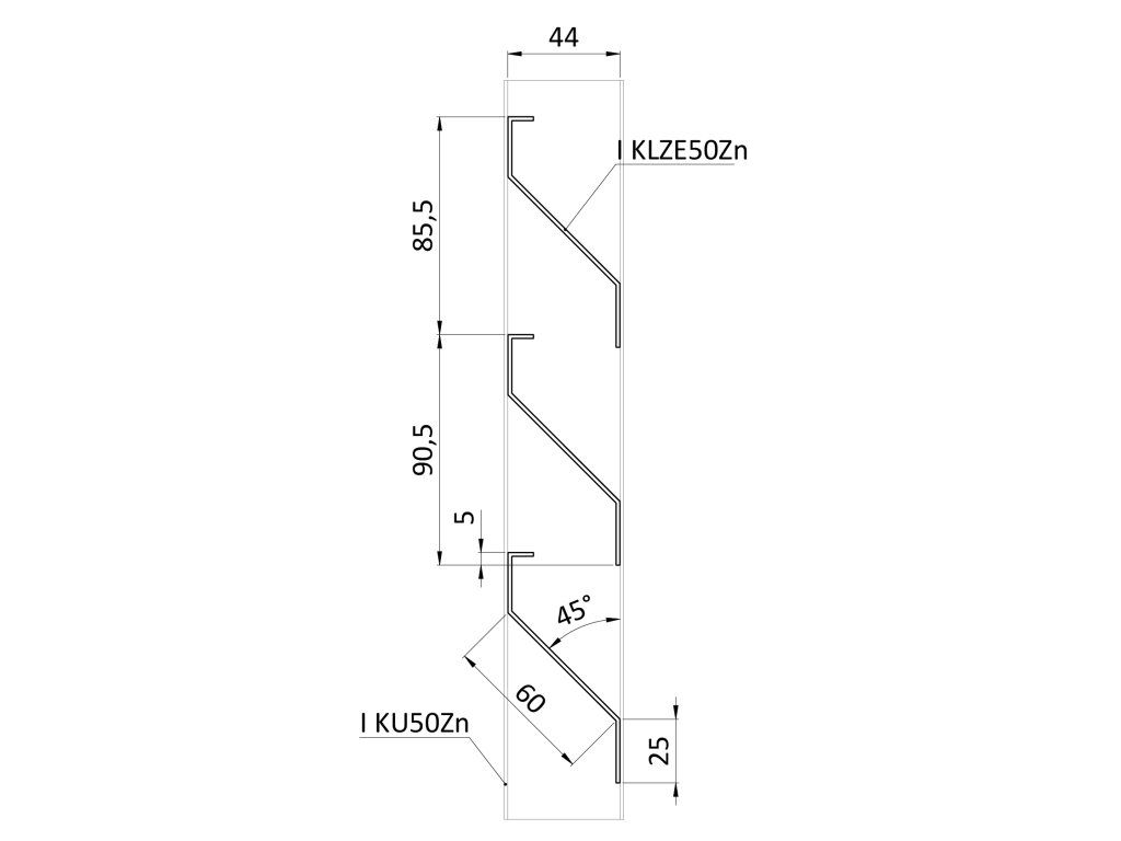 Z-profil-lamela L-3000mm, 23x60x25x1,5mm s vystuženou hranou 10mm, zinkovaný plech, použitie pre plotovú výplň v kombinácii s KU50Zn a profilom 50mm cena za 3m kus