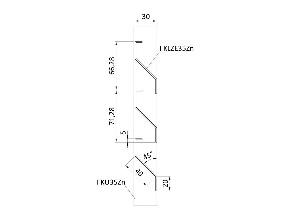 Z-profil-lamela L-4000mm, 23x40x20x1,5mm s vystuženou hranou 10mm, zinkovaný plech, použitie pre plotovú výplň v kombinácii s KU35Zn a profilom 35mm,40mm alebo špeciálom KJL70x34x55x2, cena za 4m kus