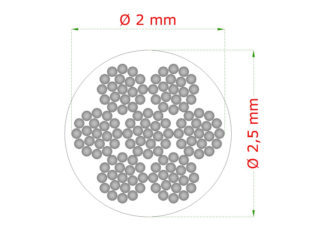 oceľové lanko ø2mm (7x19 dr.) /galvanicky pozinkované s PVC obalom - celková hrúbka 2.5mm