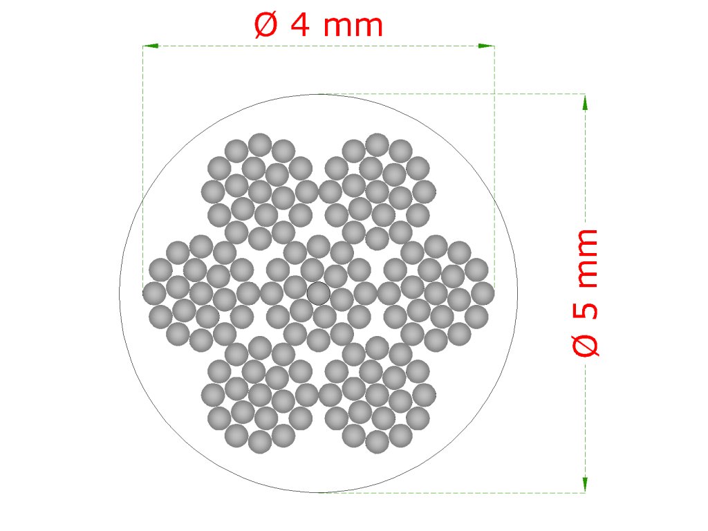 oceľové lanko ø4mm (7x19 dr.) /galvanicky pozinkované s PVC obalom - celková hrúbka ø5mm