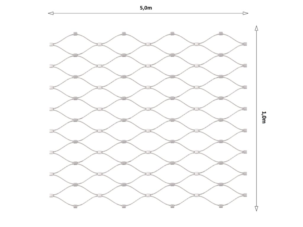 Nerezová lanková sieť, 1,0m x 5m (šxd), oko 60x104 mm, hrúbka lanka 2mm, AISI316Technické parametre: