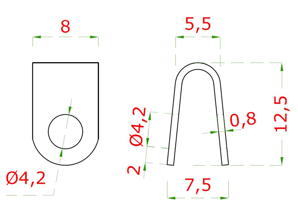 Nerezová lanková spona v tvare `U` pre lanko 2.0mm; 3.0mm a 4.0mm, AISI 316