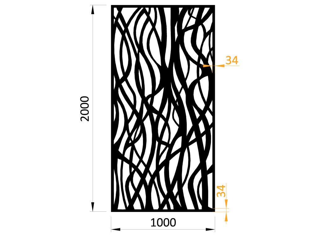 dizajnová kovová výplň, laserom vypálený vzor 1264, rozmer 1000x2000x2,5mm +/- 0,5%, bez povrchovej úpravy, perforácia 44%