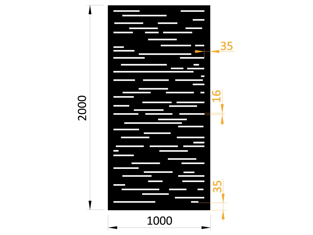 dizajnová kovová výplň, laserom vypálený vzor 8311, rozmer 1000x2000x2,0mm +/- 0,5%, bez povrchovej úpravy, perforácia 15%