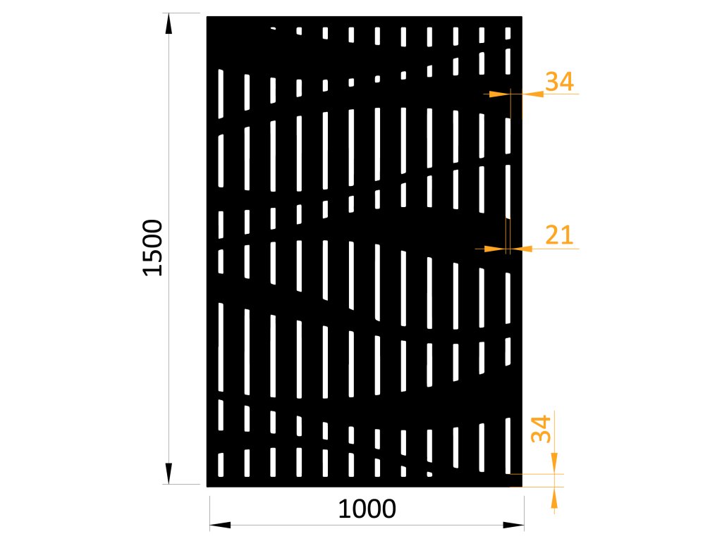 dizajnová kovová výplň, laserom vypálený vzor 9342, rozmer 1000x1500x2,0mm +/- 0,5%, bez povrchovej úpravy, perforácia 15%