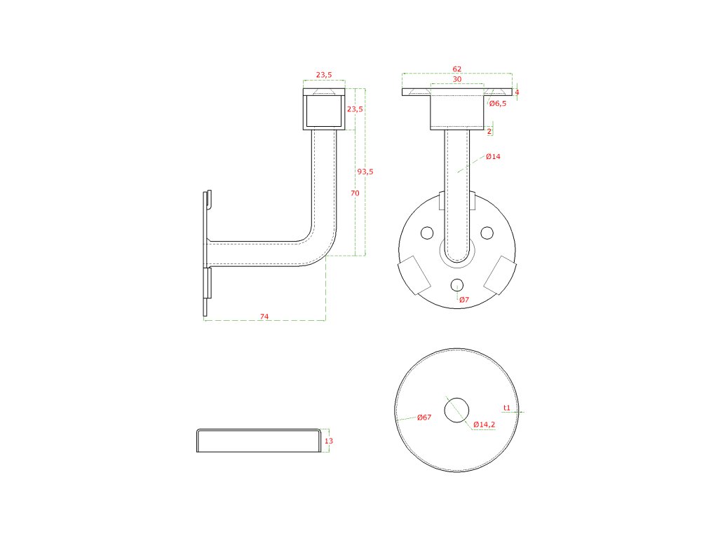 držiak LED madla na stenu na madlo EB1-HM42, EB1-JHM42 a EB1-JHM60x40; brúsená nerez K320/AISI304Dodatočné parametre
