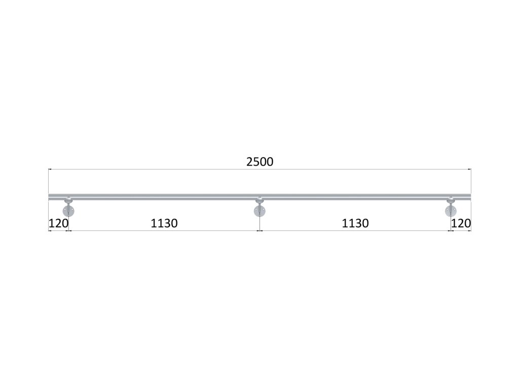 Led madlo 2500mm /brúsená nerez K320 /AISI304 (set: 3ks úchyt, madlo ø 42.4mm s ukončením a hlinikový profil na led pás), bez LED pásu