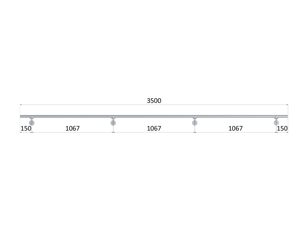 Led madlo 3500mm /brúsená nerez K320 /AISI304 (set: 4ks úchyt, madlo ø 42.4mm s ukončením a hlinikový profil na led pás), bez LED pásu
