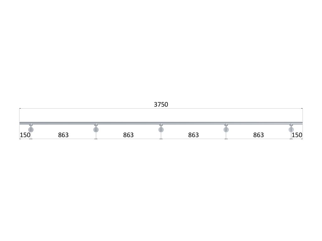 Led madlo 3750mm /brúsená nerez K320 /AISI304 (set: 5ks úchyt, madlo ø 42.4mm s ukončením a hlinikový profil na led pás), bez LED pásu