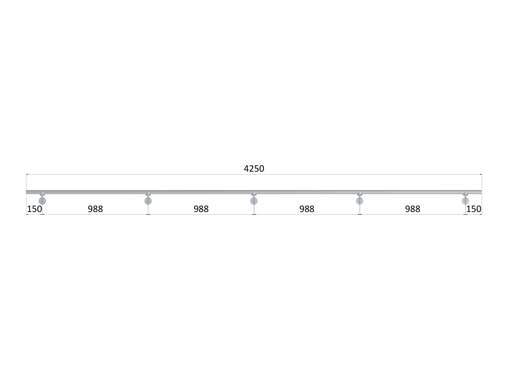 Led madlo 4250mm /brúsená nerez K320 /AISI304 (set: 5ks úchyt, madlo ø 42.4mm s ukončením a hlinikový profil na led pás), bez LED pásu
