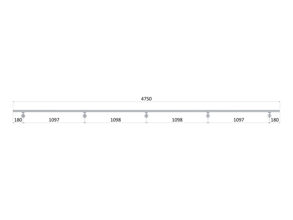 Led madlo 4750mm /brúsená nerez K320 /AISI304 (set: 5ks úchyt, madlo ø 42.4mm s ukončením a hlinikový profil na led pás), bez LED pásu