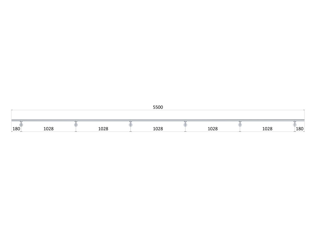 Led madlo 5500mm /brúsená nerez K320 /AISI304 (set: 6ks úchyt, madlo ø 42.4mm s ukončením a hlinikový profil na led pás), bez LED pásu