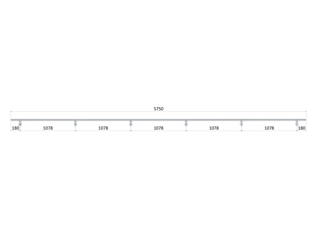 Led madlo 5750mm /brúsená nerez K320 /AISI304 (set: 6ks úchyt, madlo ø 42.4mm s ukončením a hlinikový profil na led pás), bez LED pásu