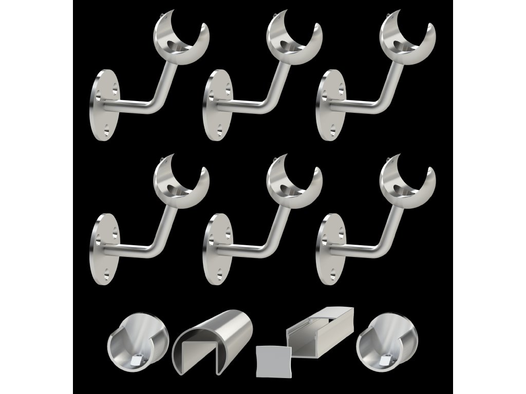 Led madlo 6000mm /brúsená nerez K320 /AISI304 (set: 6ks úchyt, madlo ø 42.4mm s ukončením a hlinikový profil na led pás), bez LED pásu