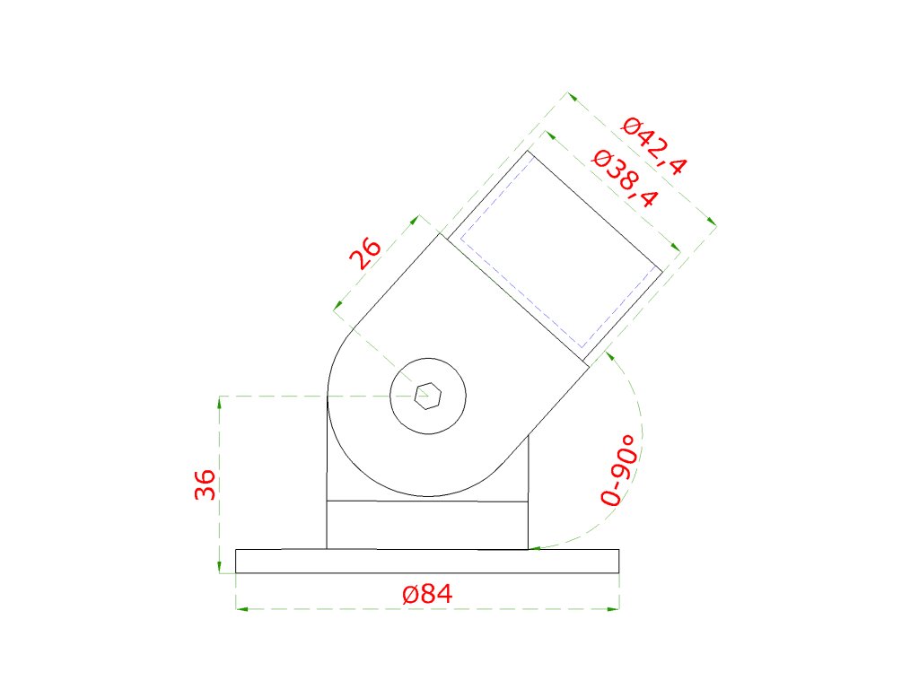 spojka nastaviteľná s kĺbom na trubku ø 42.4mm , s uchytením na stenu, brúsená nerez K320 /AISI304Dodatočné parametre