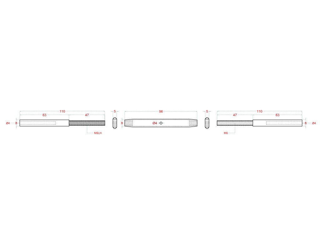 lepiaci úchyt, šponovák pre nerezové lanko ø4mm, so závitom M6 a LH6, brúsená nerez K320/ AISI304, farba: čierna PVDDodatočné parametre
