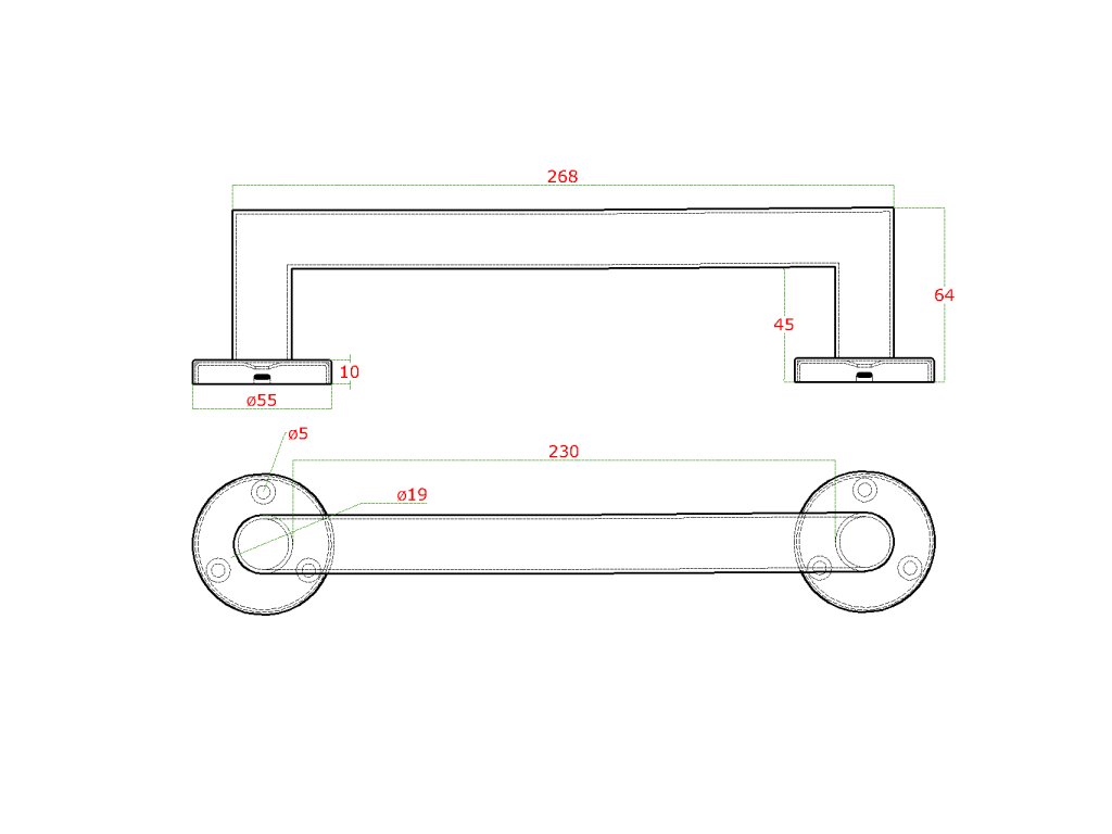 nerezové madlo (268x64mm /ø 19mm), brúsená nerez K320 /AISI304