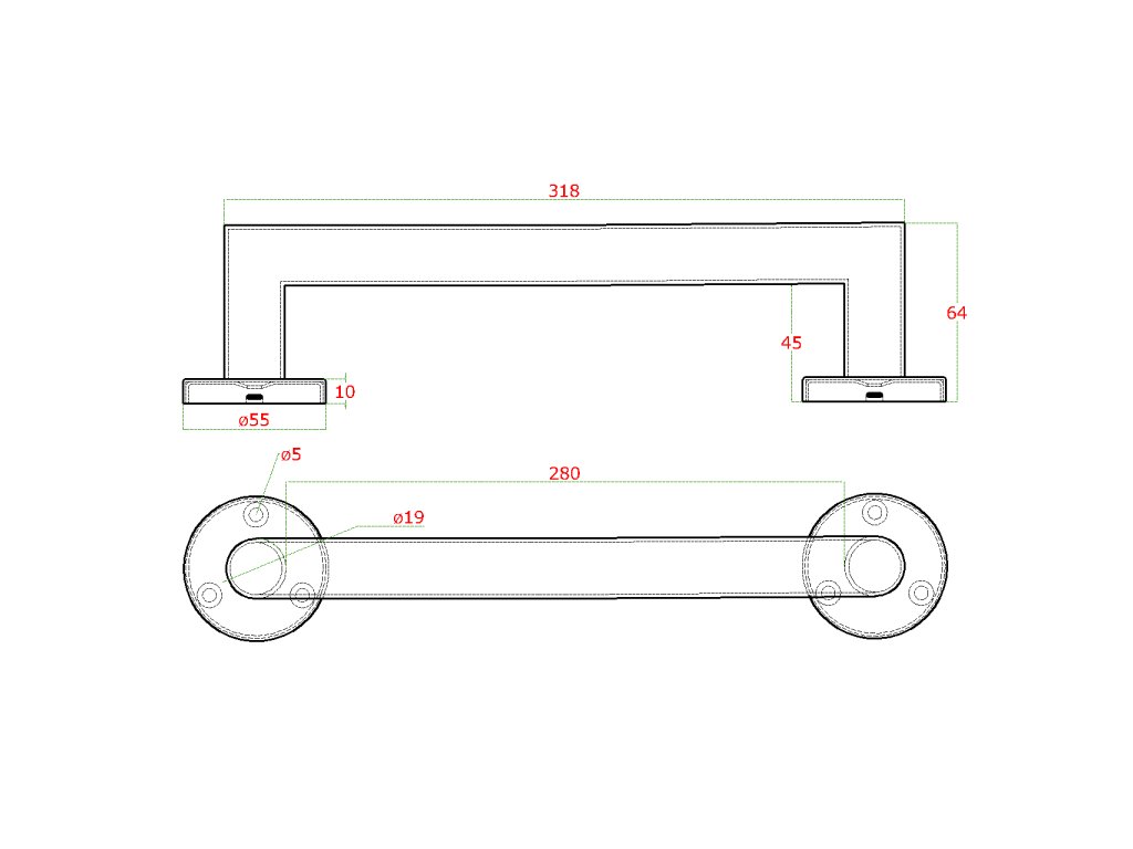 nerezové madlo (318x64mm /ø 19mm), brúsená nerez K320 /AISI304