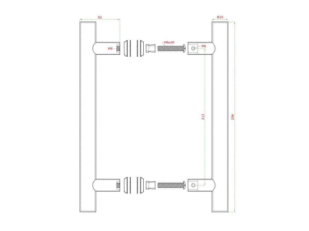 nerezové madlo na dvere (296mm / ø 25mm), na sklo 8-12mm, brúsená nerez K320 /AISI304