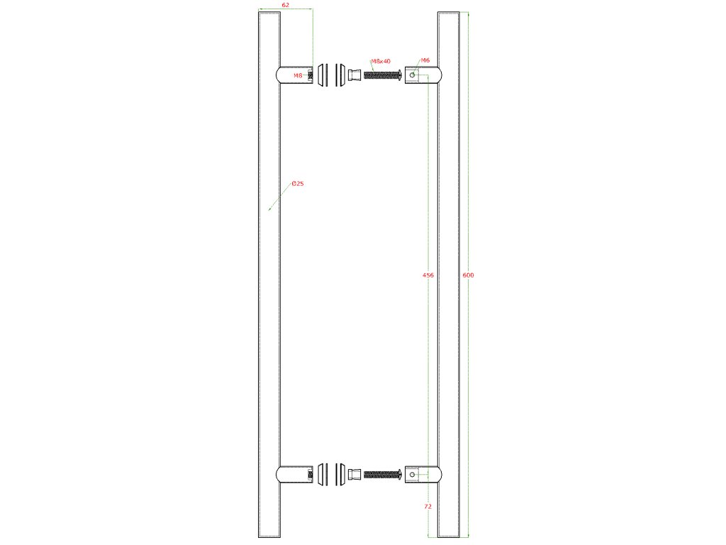 nerezové madlo na dvere (600mm / ø 25mm), na sklo 8-12mm, leštená / brúsená nerez K320 /AISI304