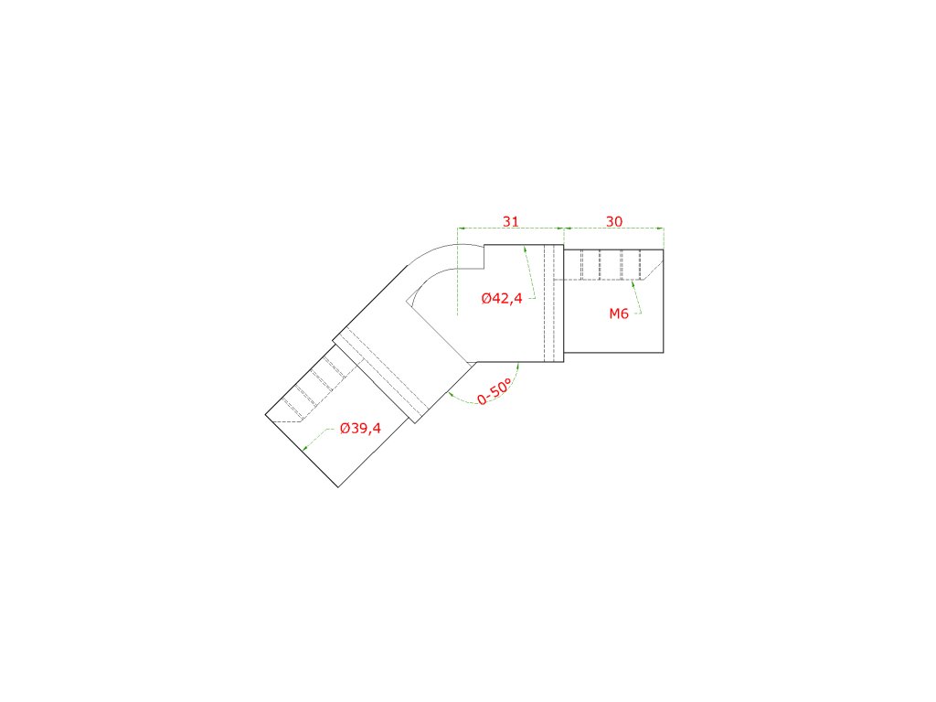 prechod nastaviteľný - koleno s kĺbom (ø 42.4x1.5mm) na madlo EB1-HM42, lepený spoj, brúsená nerez K320 /AISI304Dodatočné parametre