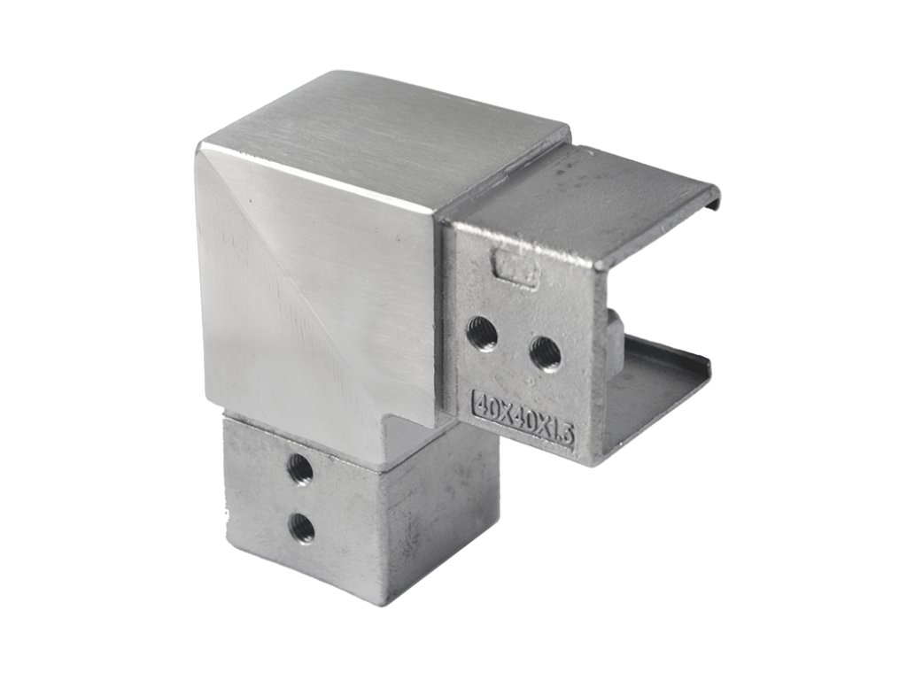 prechod - koleno 90° (40x40x1.5mm) na madlo EB1-JHM40, lepený spoj, brúsená nerez K320 /AISI304