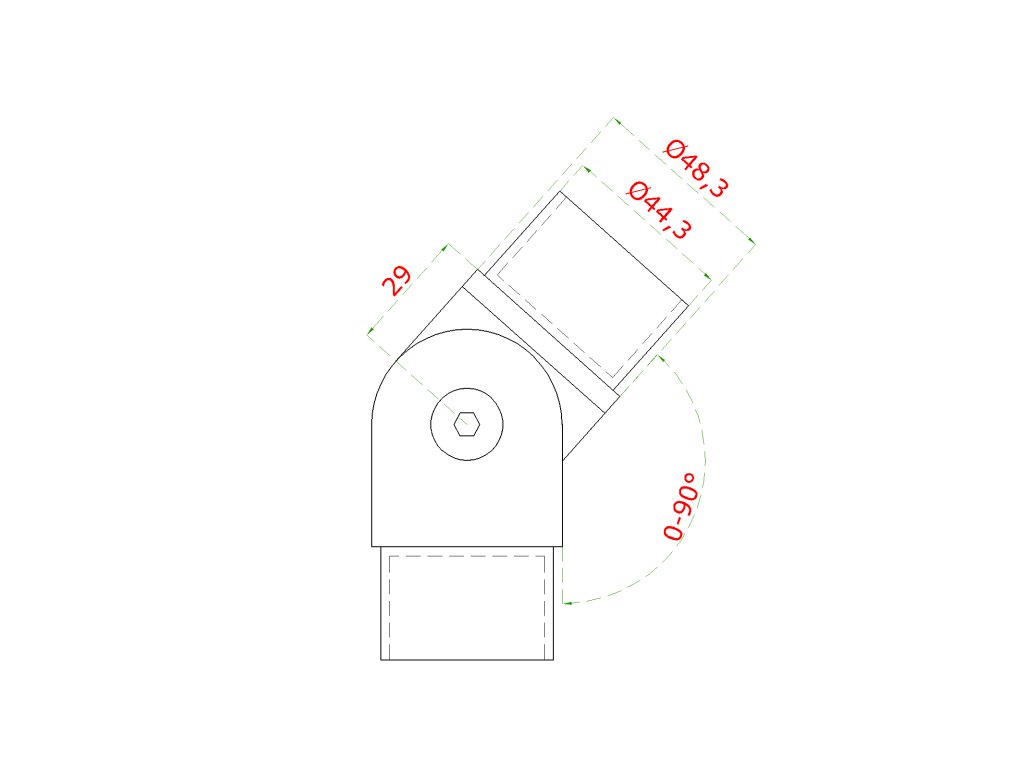 spojka nastaviteľná s kĺbom na trubku ø 48.3 mm, brúsená nerez K320 /AISI304Dodatočné parametre