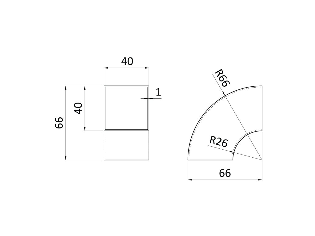 spoj - koleno 90° (na navarenie) 40x40mm, brúsená nerez K320 /AISI304