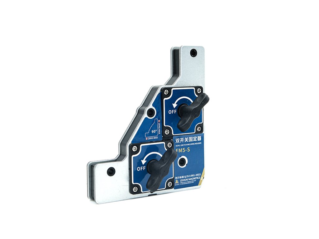 Silný dvojitý zvárací magnet s uhlom 90°, vhodný na upevnenie prvkov pri zváracích prácach. Vďaka presnému magnetickému spojeniu pomáha držať kovové diely v požadovanej polohe bez nutnosti sa podržať rukou či použiť svorky. Je vhodný pre rôzne typy zvárania aj ako praktický pomocník pri montážach a opravách v dielni.
